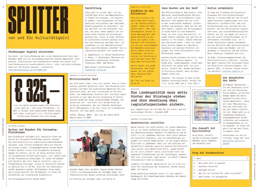 Wie können wir Vermittlungsarbeit gestalten, sodass Sie Ihren Senf dazugeben können? Überlegungen zur Situation im Theater von Elisabeth Mürzl.